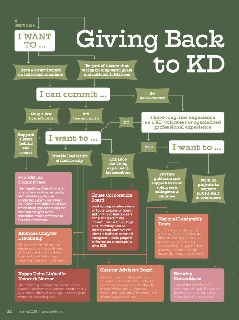 Kappa Delta volunteers show up. They answer questions, guide decisions, celebrate successes and support members through challenges.